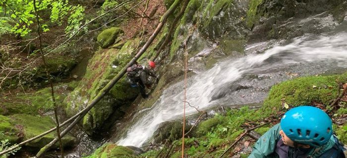 「う〜わっ…」 両側から迫る岩壁から覗き見えるその先には大岩を携えた直瀑が轟音を立てて待ち構えていた。時刻は17時45分。予定では焚火を囲んで飯盒でご飯を炊き、それぞれが持ち寄ったオカズとお酒に舌鼓を打っているであろう時 …
