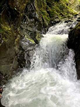 地形図に一箇所出てくる屈曲点にもゴルジュや滝は出てこず穏やか な流れでしたが、一箇所、 地形図上では読み取れない場所にプチゴルジュがありました。