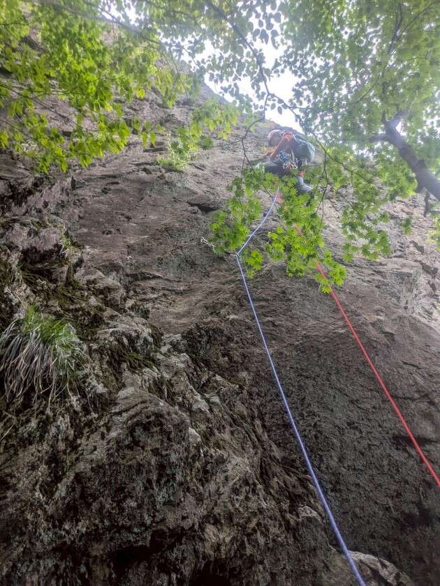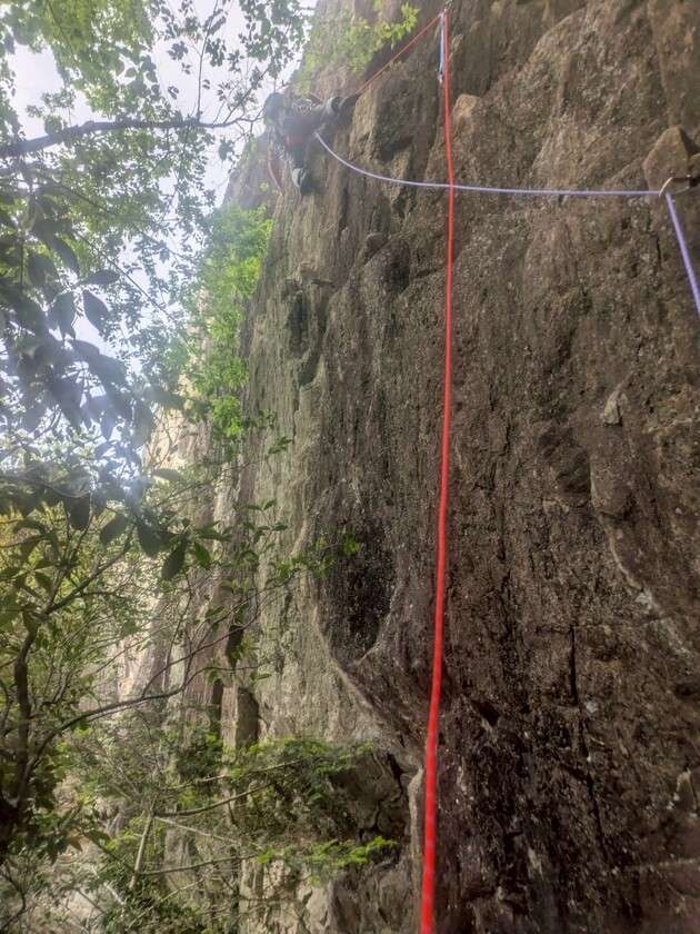 しかし、大蛇嵓を経験した今から言うと、所詮、ゲレンデに過ぎない。大蛇嵓には終了点意外にはボルトはないし、もっと脆い。手付かずの岩壁を登る覚悟が必要だ。しかしまぁ、雪彦山でマルチやっといたことは、無駄ではなかった。(“ニッチモ”“サッチモ”は、お散歩レベル)。
