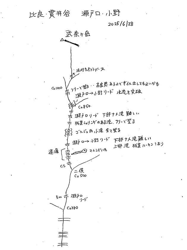 今回は、水量が少なかったおかげで、ほぼ全ての滝にトライすることができた。難しいところは全部セトキチさんが果敢に登ってくれたのだけど、、、特に、前回、落ちてしまった滑滝や、前々回、リードを試みるも引き返した滝を、フォローでありながら登れたのは収穫だった。以前はフェルトで登ったが、今回はラバーで登ったという違いもあるかも。ラバーだと、水流から少し離れると滑りやすいが、水が流れている部分だと、わずかな凹凸でも摩擦が効いてスタンスとして利用できる。ただ、ラバーにしろフェルトにしろ、水量次第で登れるところ、ザイルの出し方も変わる点は要注意。それにしても、貫井は完全燃焼できる。今回は目の前の滝の対応に精一杯で、写真一枚も撮らずに終わってしまったけど、写真より思い出に限る!