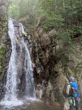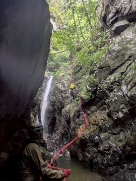 周囲には「大滝登攀はやりません。私にはまだ早いです。」と宣言していたのですが、背伸びをさせてもらい、いつもと違った角度から沢の世界が見れて良い経験になりました。