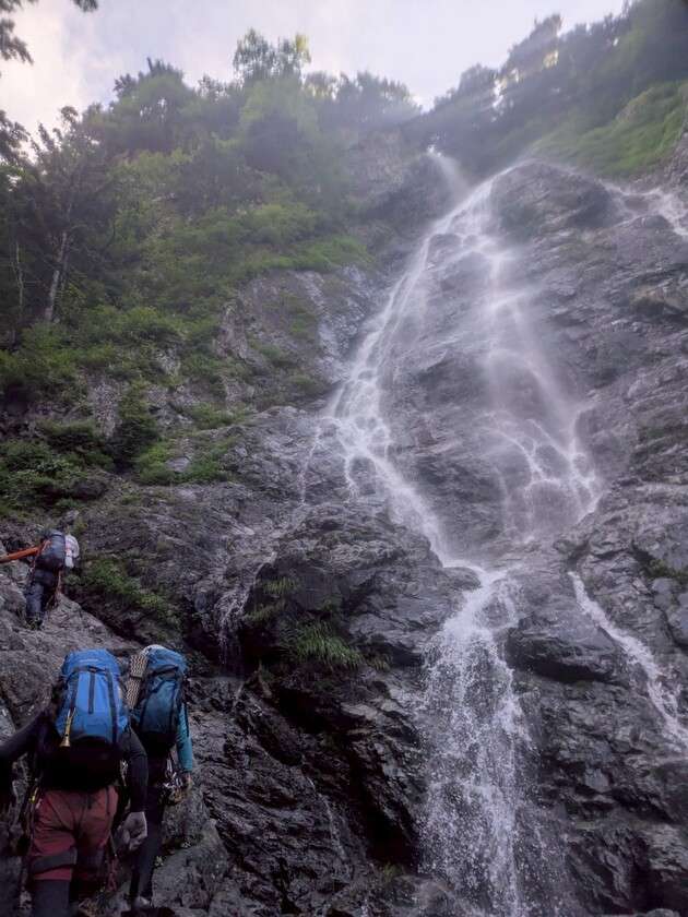 2日目も夕方に雨の予報が出ていたため、極力水に濡れないルート取りで、猛烈な速さで沢下降。