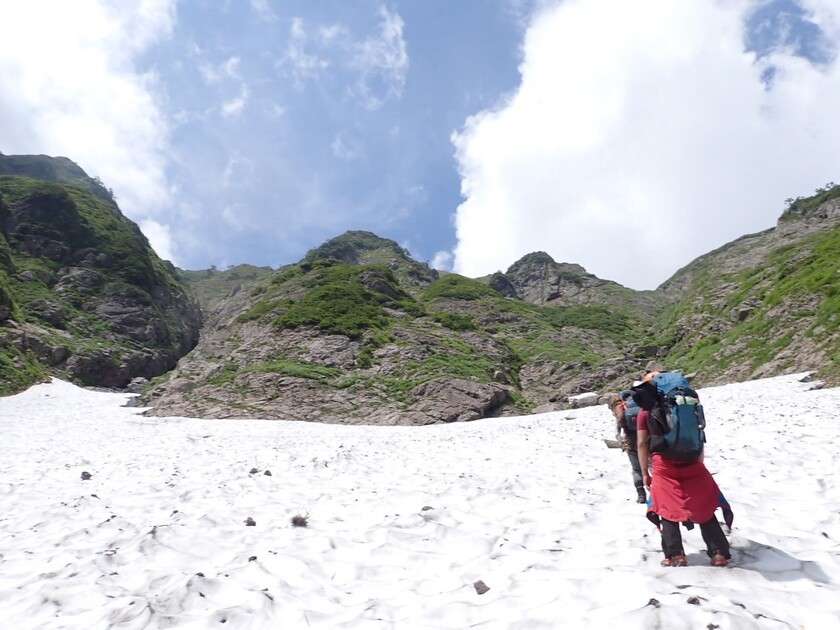 雪渓の上は溯行スピードが圧倒的に上がるが、やや、単調でまぶしすぎる。