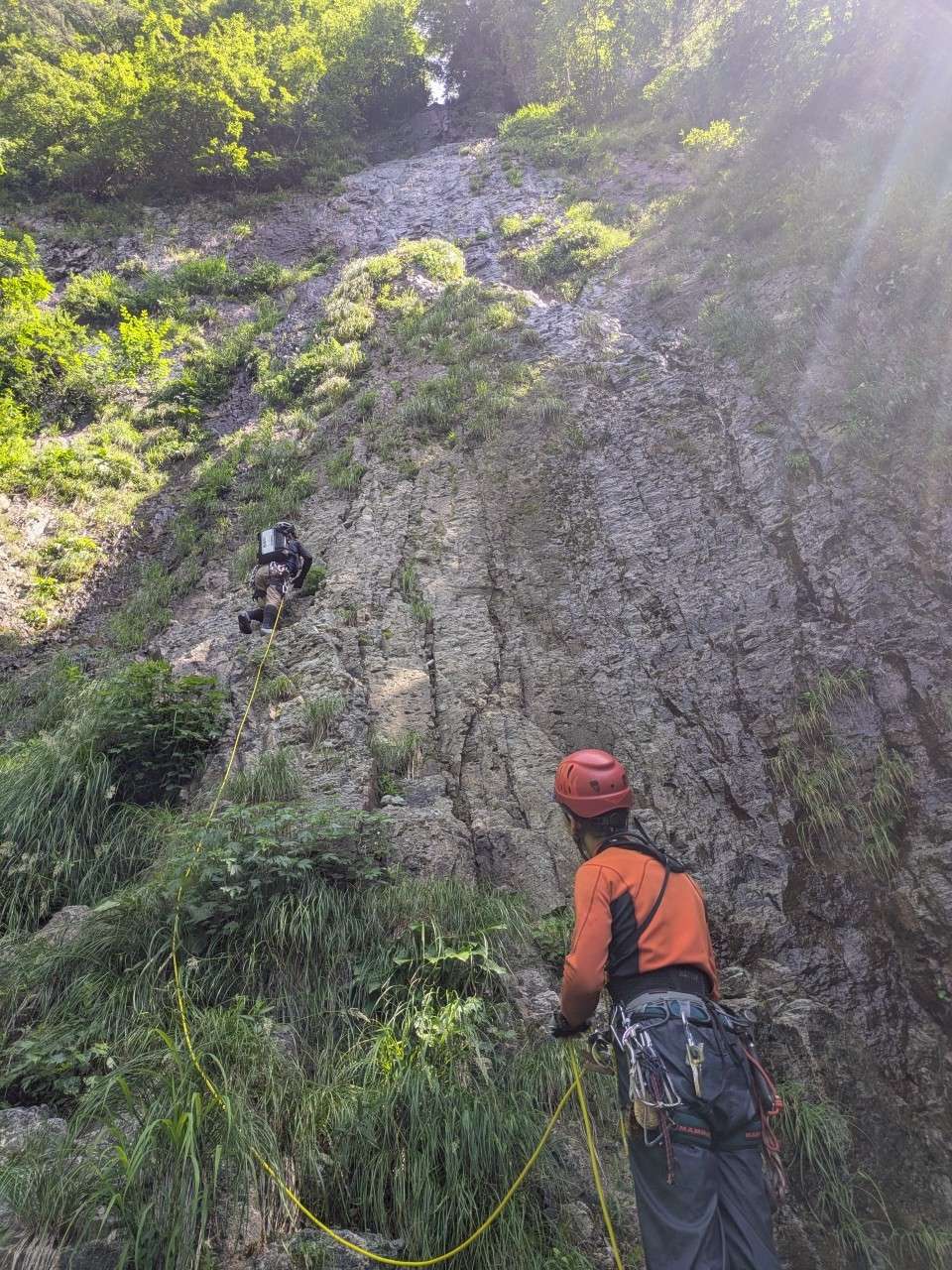15mは滑っているし、抜け口が被っていて、ちょい悪な感じだった。まずまずの登攀。そうして、目的の60mの登場~。ここはtoraさんにリードしてもらう。
