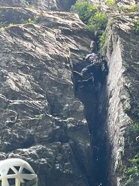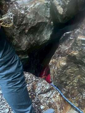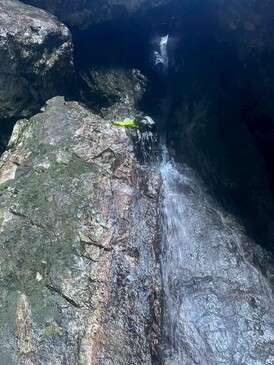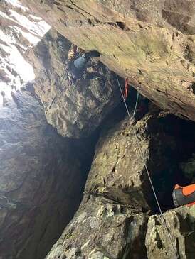CS滝 1P目 OKDさん 2P目 REDEYEさん(1P終了点から登攀が撮影できなかったので、抜け口の様子の写真です)