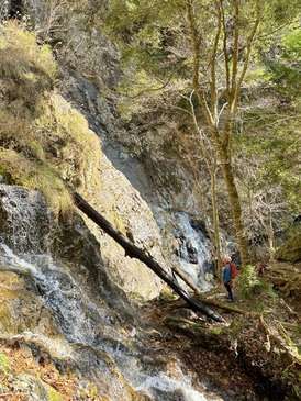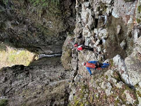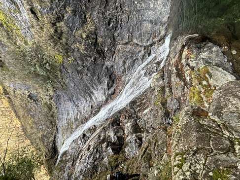よしのぼりさんが滝の下から見上げています。オブザベーション中でしょうか?