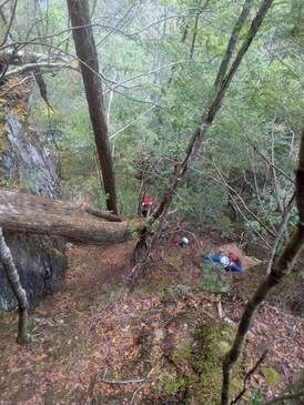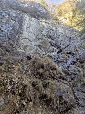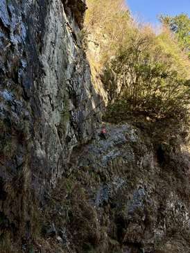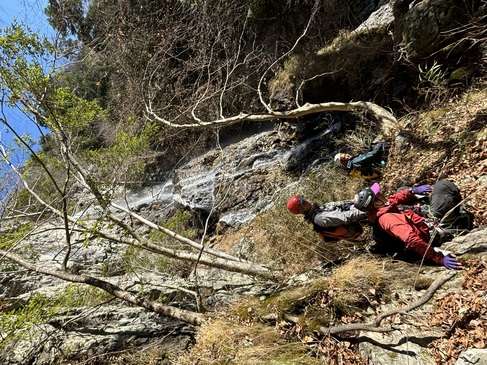 少し上がり、林道に繋がるルンゼを途中まで登ります。ザレていて落石注意ですが私も落ちそう。神経を使いました。