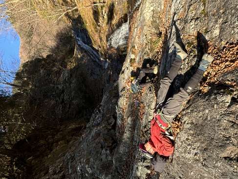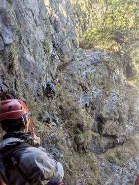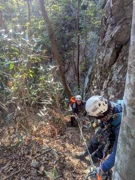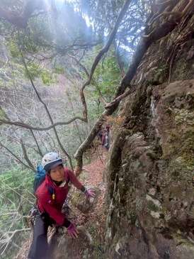 私は4番手、ロープの安心感を感じながらも、ドキドキヒヤヒヤしながら登りました。