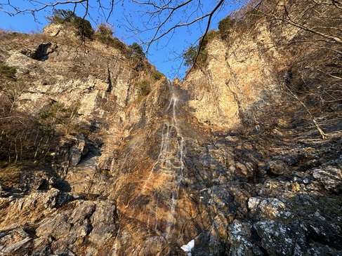雌滝の上流には木々の間に雄滝も見え、奥行き感も凄い。