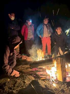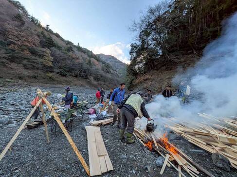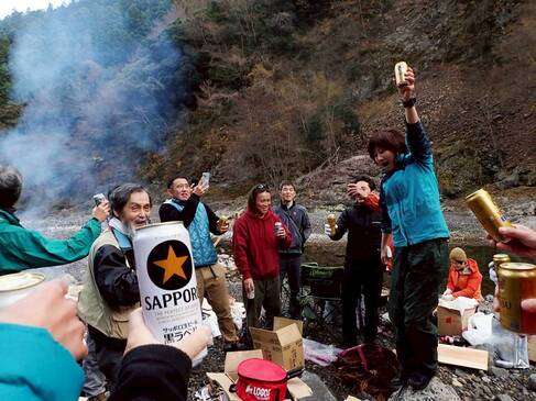 会外含む35名という参加者を迎え、呑んで、食って、笑って、しゃべって、夜が更けるまで豪勢な焚火を囲みました。