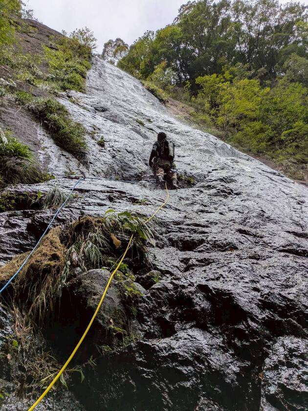 100mクラスの大滝。クラッククライミング楽しめます。全4ピッチ。