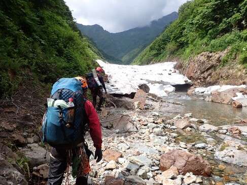 2025年8月、北ノ又川にて。越後の沢にも行きます。